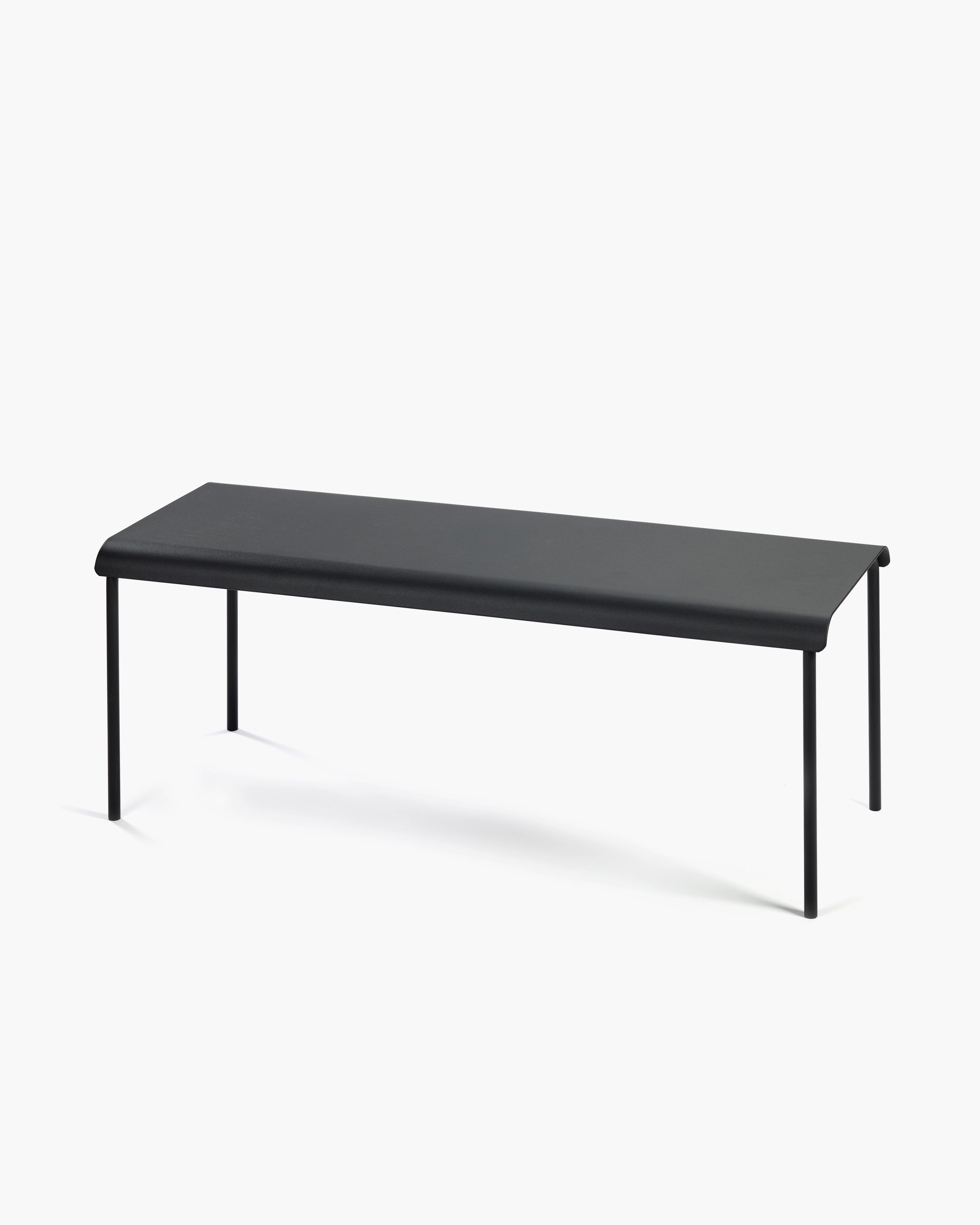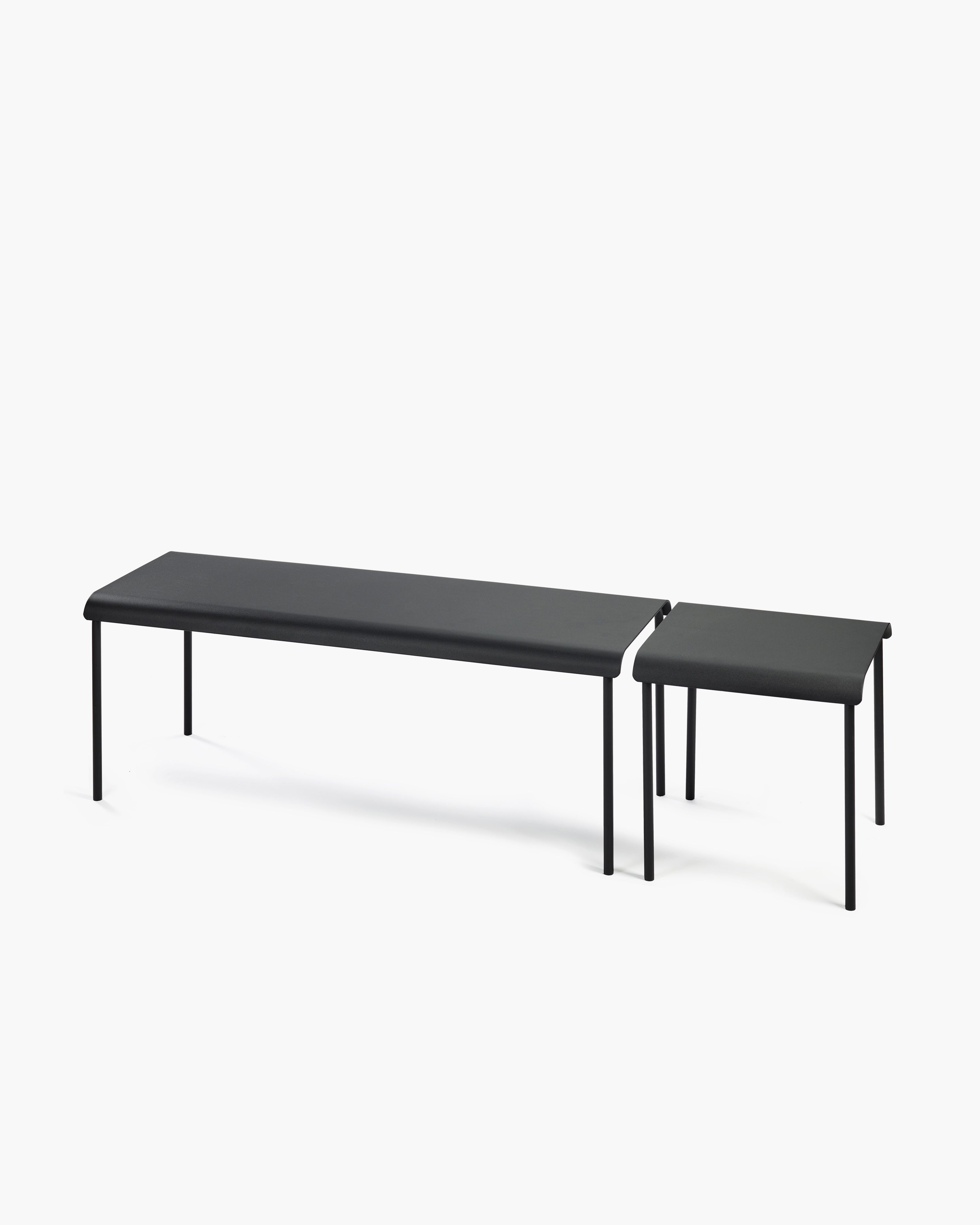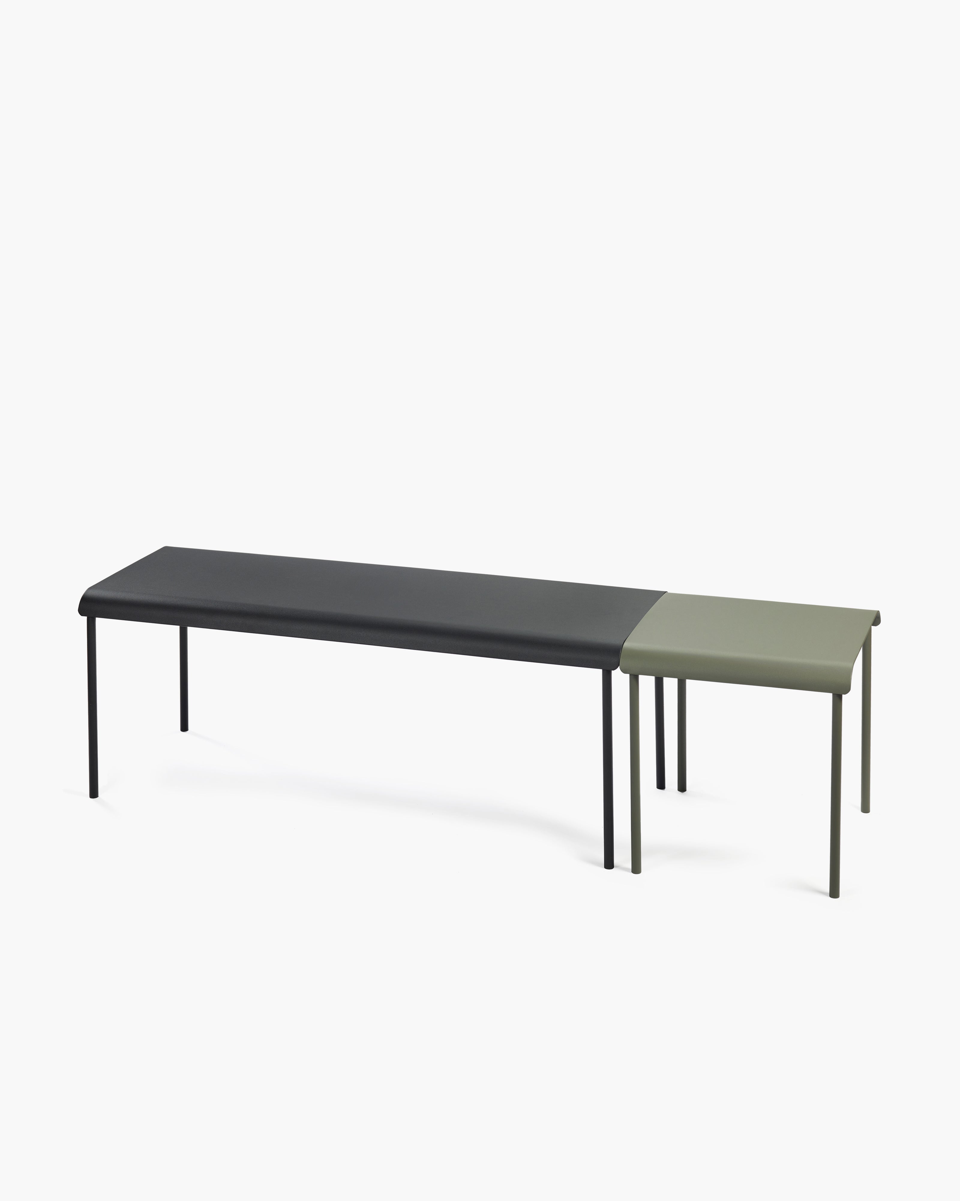 The aluminum outdoor benches from the August collection by Vincent Van Duysen for Serax feature a minimalist design with contemporary proportions. Made of aluminum and available in black, green, or sand powder coating, they are suitable for both indoor and outdoor use.
